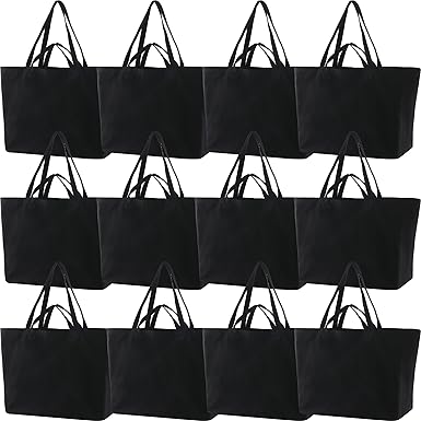 120 Pieces Cotton Tote Bag Bulk 15 x 16 Inch Blank Shopping Cloth Bags Reusable with Long Handle for Women Men DIY(Black)