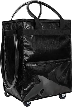 Reusable Grocery Bag on Wheels, (Medium, Black) Rolling Shopping Bags with Wheels and Handle, Folding Rolling Tote Trolley, 3