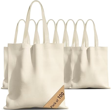 100 Pcs Canvas Bags Bulk - Natural Cotton Bags with Handles Plain Polyester for Crafting DIY