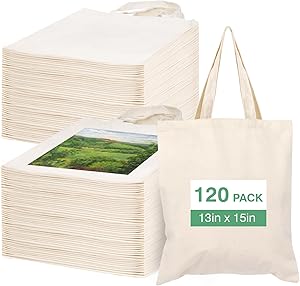 Canvas Tote Bag Bulk 120 Pack Reusable Grocery Shopping Cloth Bags, 13x15 Inches Medium Blank Tote Bags for Heat Transfer,