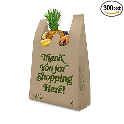 300 PACK Reusable Shopping Bags 12.5 x 21.5 Inches, Nonwoven Eco-Friendly Grocery Bags, T-shirt Beige