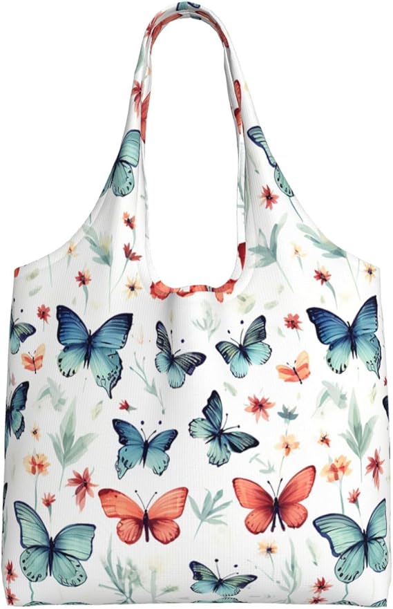 Tote Bag for Women Reusable Grocery Bag Canvas Shopping Bag Cute butterfly Handbag Foldable Shoulder Bag